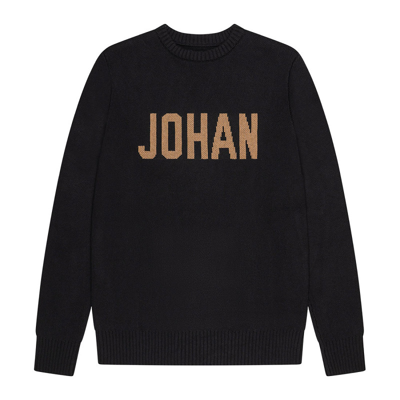 Le pull ras-du-cou tricoté ‘Johan’ Johan Cruyff noir est un ajout intemporel et polyvalent à toute garde-robe. Ce pull pour homme à coupe régulière est doté d’un grand imprimé ‘Johan’ sur la poitrine, offrant un style moderne et reconnaissable.