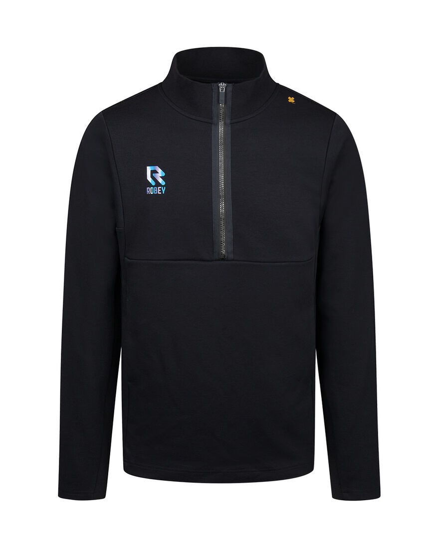 Sportliches Off Pitch Half-Zip Top von Robey. Das Off Pitch Trikot ist perfekt zum Tragen nach dem Training oder nach einem Spiel. Das Off Pitch Top hat eine stylische Passform und ist aus weicher und hochwertiger Baumwolle gefertigt, die für optimalen Tragekomfort sorgt. Der Pullover hat einen halben Reißverschluss und der Buchstabe R von Robey ist auf der rechten Brust angebracht. Auf der linken Schulter ein vierblättriges Kleeblatt in Gold. Material: 100 % Baumwolle.